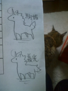 しっぽが上にあがってるのが駒姫でさがってるのが義光ですw
