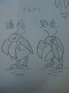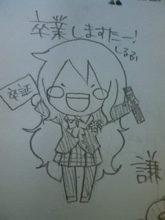 今日の書道でかいたお経 8割かいたところで間違えてしまいまた一から書き直した えへへ いやね。。。。。うん。。。。。最近夜まで遊んどる気がするw とりあえず。。。卒業式の日に落書きしたものをw カマキリかいたら。。。。。。こうなったw