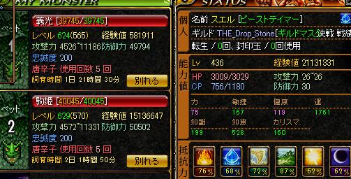 朝っぱらから昨日のGv結果をのっけたいとおもいますw そういえば~最上軍のステ久々にw うん。。。もっかいとりなおすw そして相手マスタさんにG名記載許可を得たので遠慮なく! 「◆灰色の騎士団◆」さんです! よろしくおねがいします(∀) 今回の参加メンバー 1PTと2人!! 過去最高ですwww そしてちゃっかり宣伝させてもらいましたwww ごちです← さぁGv開始だ!! 序盤 いいねーb なかなか相手さん硬い。。。。 しかもWIZ3人いるしw アスヒが強力で倒れなかったです でもLAとらせていただきました!!ごち(-人-)* 結構いけるな~ しかしWIZBIS粘着でいこう!! というわけでWIZさんのCPすえたかなぁ? 粘着申し訳ないw メテオが地味に痛かったもんでw マスタさんのパラ痛かった。。。w ブロック高いしw うちよりLv高いから回避補正きかないんだよね そこでようやく羽さんが相手マスタさま打倒(。・д・)!! ごちです(-ω-)! 勝利いたしました!! 灰色の騎士団さま、Gvお疲れさまでした! なかなか皆さん強かったです! 私LA1回しかとってないわ。。w しかも短期加入の人がもう抜けるみたいだから平均も火力もさがってまう。。w ありがとうございました><v |